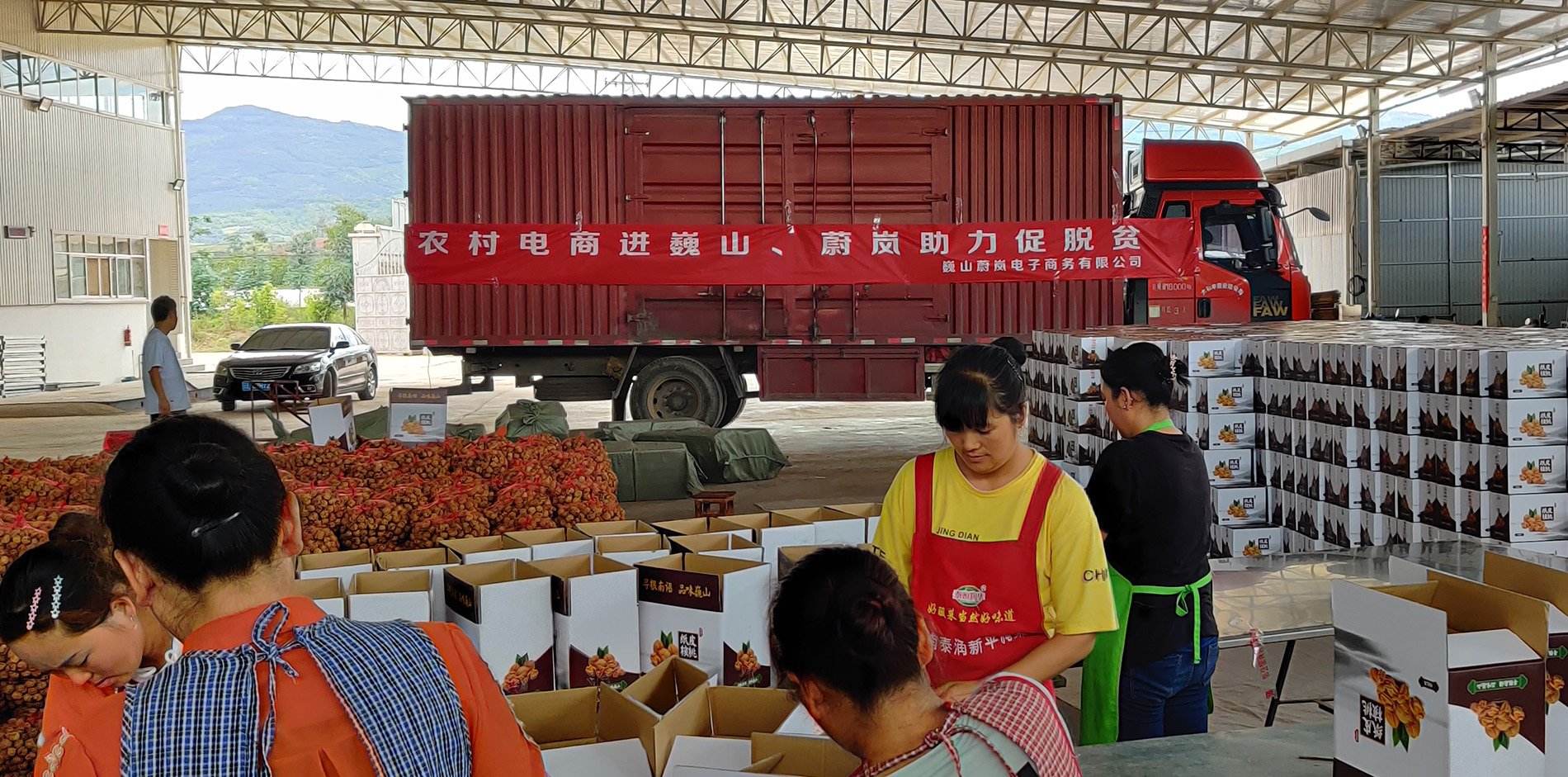 蔚岚公司搭建了淘宝、拼多多、微商城、快手等多平台的营销体系,以地区打造的区域公共品牌为牵引,联合本地特色农特产商家,构建区域农特产业联盟,对外推广地方文化生活方式及农特产品,同步深化与广东、上海等帮扶采购渠道的合作,线下依托社区电商、商超、门店等,形成“线上+线下”的新型农产品网络营销体系,将农产品更好的在本地、全国乃至世界得到推广和售卖。